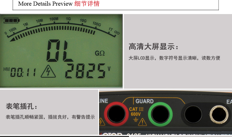 VICTOR 3123高壓絕緣電阻測試儀適用于現(xiàn)場電力設備以及供電線路的測量和檢修。