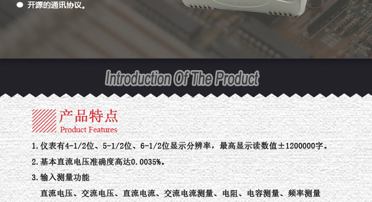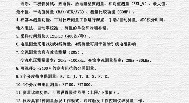 1. 儀表有4-1/2位、5-1/2位、6-1/2位顯示分辨率,最高顯示讀數(shù)值±1200000字。