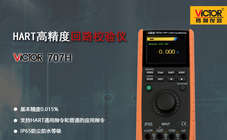 VICTOR 707H  HART高精度回路校驗(yàn)儀是一款高精度回路校驗(yàn)儀,本儀表內(nèi)置有HART調(diào)制解調(diào)器,可實(shí)現(xiàn)HART基礎(chǔ)指令。