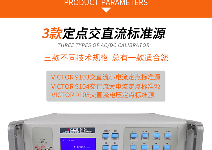產(chǎn)品名稱:VICTOR 9104交直流大電流定點標(biāo)準(zhǔn)源